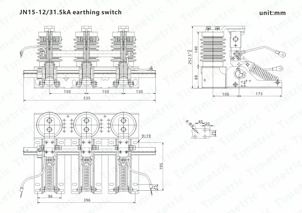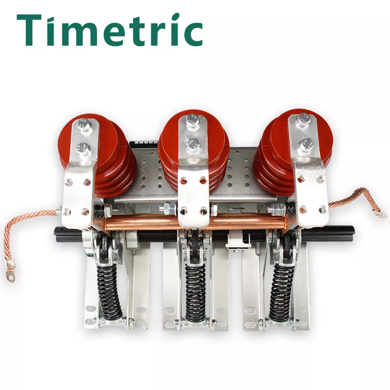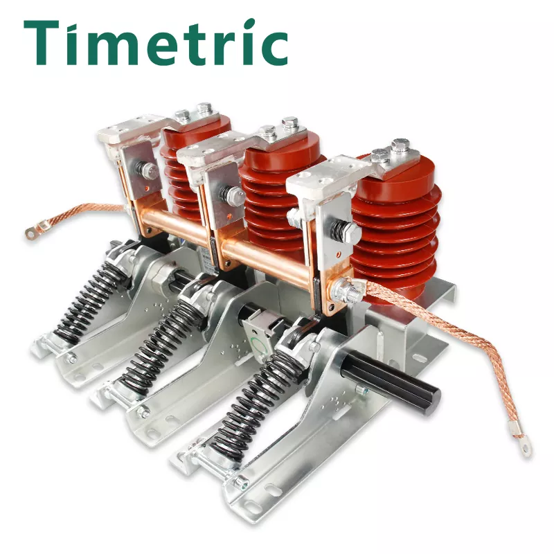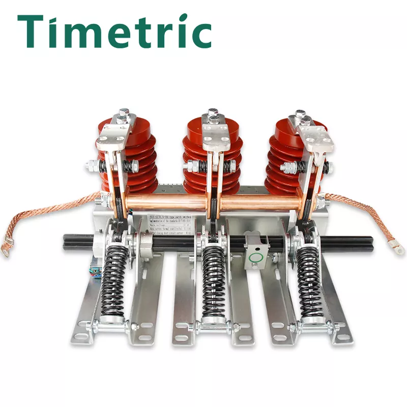 Der von Timetric Electric erzeugte Erdungsschalter von JN15-12KV 150-mm-Phasenabstand besteht aus einer Halterung, einer Erdungsmesserbaugruppe, einem statischen Kontakt und einem Sensor. Die Halterung ist aus dünnen Stahlplatten geschweißt. Sein Betriebsprinzip ist, dass der Betriebsmechanismus die Hauptwelle zur Drehung vorantreibt, wobei die in der Kompressionsfeder gespeicherte Energie verwendet wird, um schnelle Öffnungs- und Schließvorgänge zu erzielen. Beim Schließen werden das Erdungsmesser und der statische Kontakt über die Feder zuverlässig kontaktiert. Das Produkt verfügt über eine kompakte Struktur, einen leichten, flexiblen Betrieb, eine einfache Installation und eine starke dynamische thermische Stabilität. Die Öffnungs- und Schließgeschwindigkeit wird von der manuellen Betriebsgeschwindigkeit nicht beeinflusst. Wenn der Betriebsmechanismus den Erdungsschalter schließt, überwindet das Drehmoment, das als Hauptwelle fungiert, das Widerstandsdrehmoment und antreibt den Kurbelarm, um sich in die Schlussrichtung zu drehen. Dies führt dazu, dass der Betriebhebel am Erdungsmesser den Totenpunkt der Kompressionsfeder passt, Energie freigibt und den Erdungsschalter schnell schließt. Das Erdungsmesser der Erdungsmesserbaugruppe ist fest und zuverlässig mit dem Flansch des statischen Kontakts über die Kompressionsfeder kontaktiert. Während des Öffnungsvorgangs bewirkt das angelegte Drehmoment die Hauptwelle, um das Hauptdrehmoment und die Federkraft zu überwinden und den Kurbelarm in die Öffnungsrichtung zu drehen. Dies führt dazu, dass die Feder des Erdungsmesserkompression durch den Totenpunkt verläuft, den Energiespeicherprozess abgeschlossen und sich auf das nächste Schließen vorbereitet. Der Erdungsschalter und die Schließgeschwindigkeit sind unabhängig von der Betriebsgeschwindigkeit des Bedieners.
